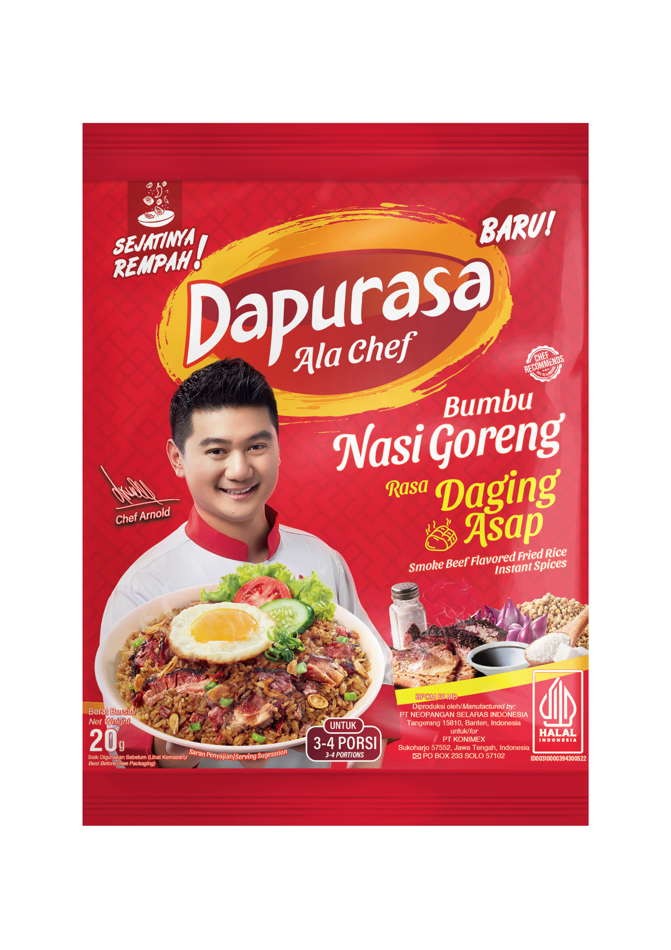「燻製肉の豊かな風味を、あらゆる料理に。」。"Daging Asap"は燻製肉を意味します。このシーズニングは、香ばしいスモーキーな香りと濃厚な肉の旨みが特徴で、インドネシアの伝統的な燻製料理の味わいをパウダー一つで再現できます。