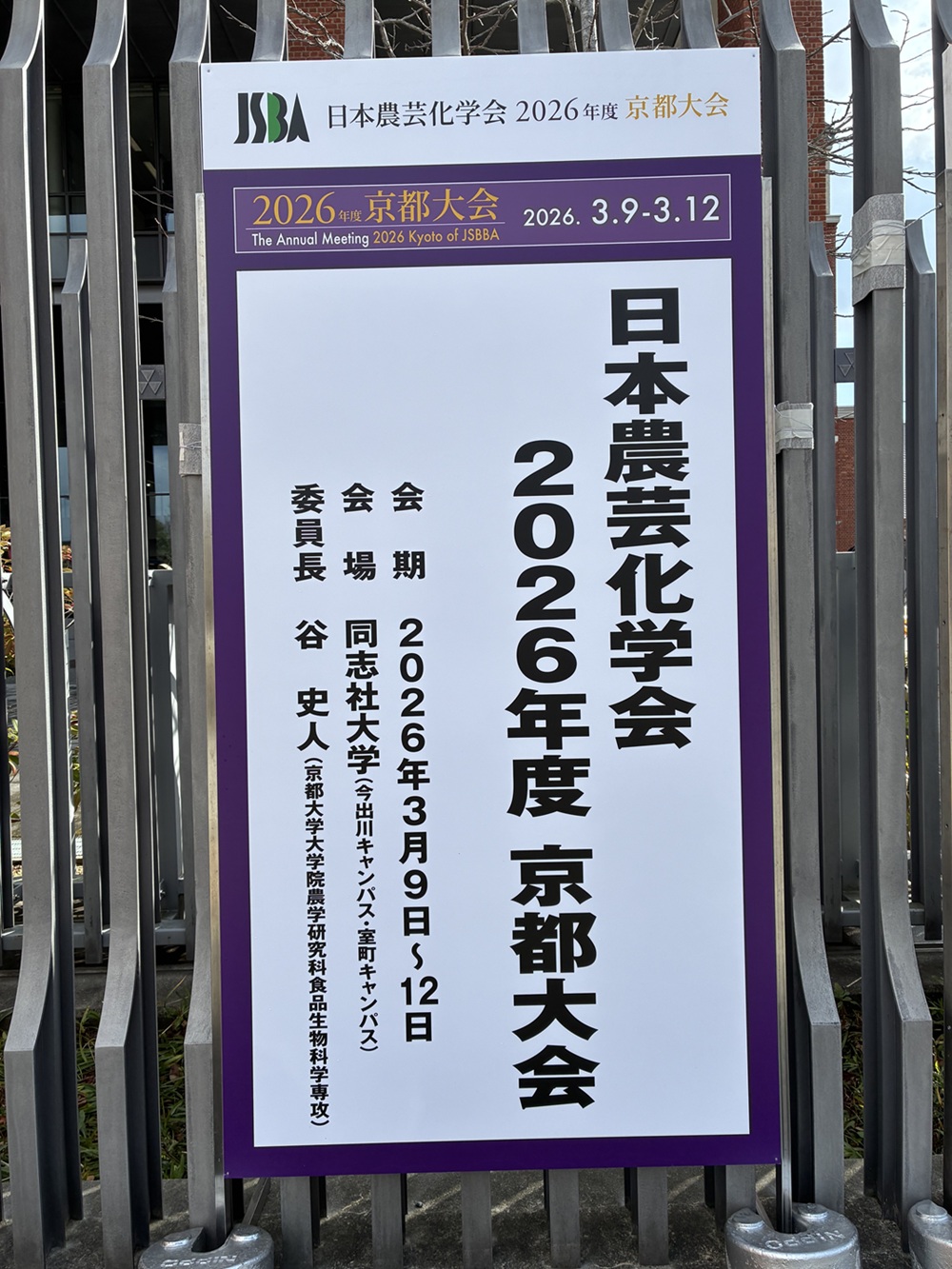 2026年3月10~12日に、京都市内の同志社大学今出川・室町キャンパスで開催されました日本農芸化学会2026年度大会に参加しました。今回はステロンパワーミックス®の加齢雌性マウスでの検討結果につきまして、共同研究先と発表を行っています。関西での開催でしたので、毎日自宅から学会会場に通うスタイル。いつもの通勤とは逆方向のため、何かしら新鮮味を感じます。同志社大学はどのキャンパスも赤レンガの洋館・ビルが多く、ちょっと外国に来た気分になり、気分があがりますね!特に主会場の今出川キャンパスは明治期の建物も複数あり、非常に重厚な佇まいです(京田辺キャンパスの方も赤レンガ調の洋館・ビルで統一感がありオシャレな外観ですが、まだ「歴史」というエッセンスがそこまで加わっていない感じです)。